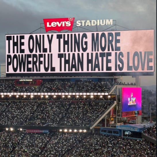 You have to admire the confidence. To step onto a Super Bowl stage and position oneself as a global authority on love is no small thing.