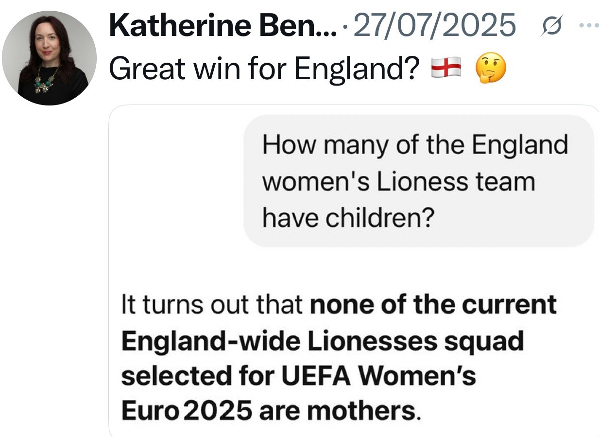 This is not about saying that women can’t kick a ball, go to university, perform brain surgery and run multi-billion dollar companies - clearly they can - but celebrating, championing and encouraging all that is part of a wider problem, and it’s a problem that is leaving women looking for men to have babies with in their late 30’s, finding that they can’t and freezing their eggs to (if necessary) raise the baby alone (often after they’ve killed a few along the way when it was inconvenient to be pregnant).