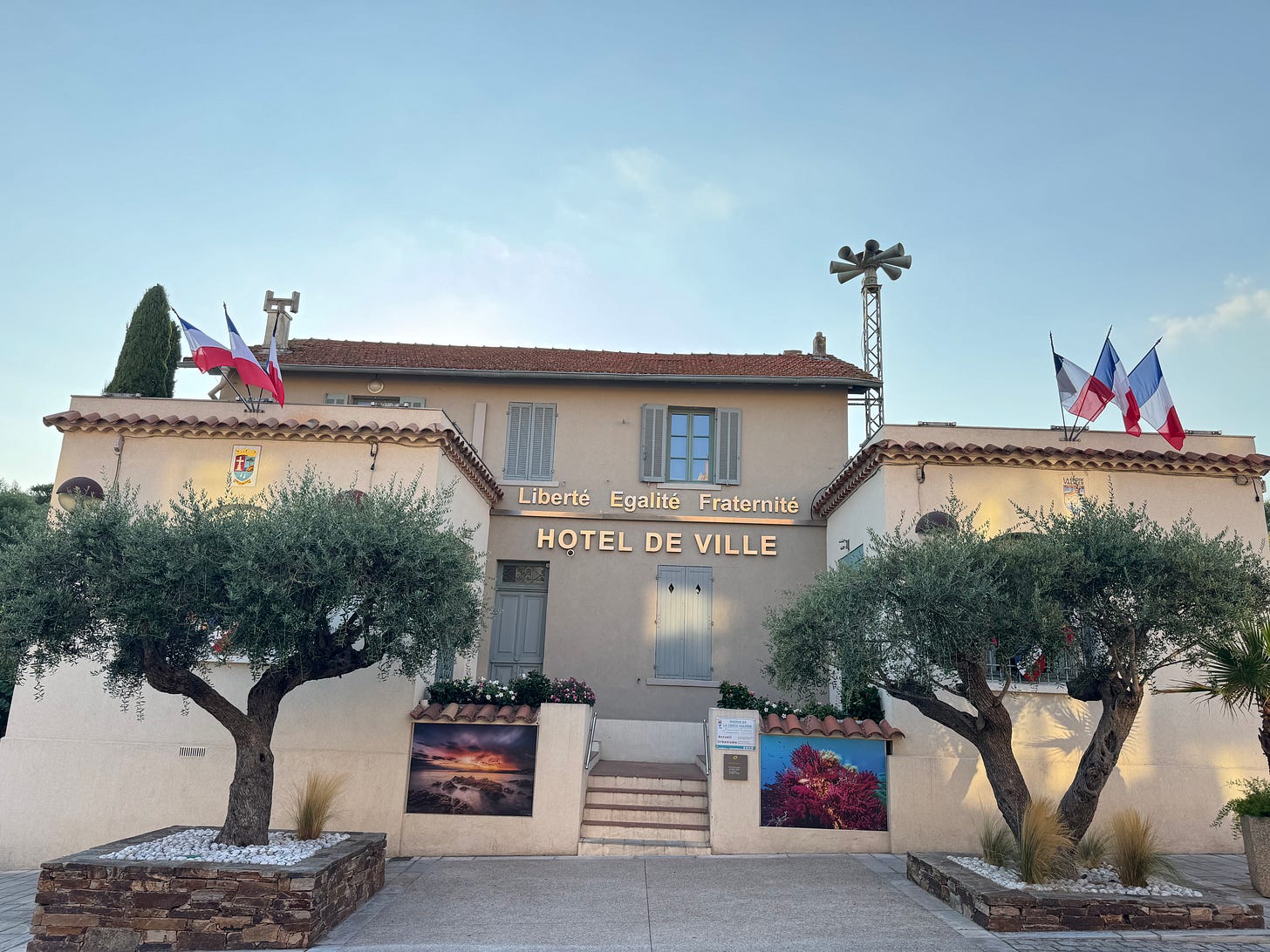 I am fortunate enough to have grabbed a few days with Katherine and her family in France, and it is impossible not to see the national motto carved into stone and civic memory (as per the above picture I took in the small town where we are staying): “Liberté, Égalité, Fraternité.” These words, proudly proclaimed and displayed, are the creed of modern France, born of the Revolution. They sound noble, superficially one might even say Christian. But their history tells another story: a story of rupture, of man setting himself in defiance of God, and of the enduring tension between the Gospel and the philosophy of 1789. And this is made painfully apparent when one walks into the local parish church for Mass, be it in the Pyrenees in Lourdes, High in the Alpine community of Haute-Savoie in Morzine, a town in Charente-Maritime like La Rochelle or Royan, or the warmth of the Côte d'Azur, one sees another France: cavernous churches with only a scattering of elderly women attending, presided over, usually, by an African priest imported from the missions. The state owns these magnificent buildings, ensuring their upkeep, but it also exerts subtle control over them, treating them as relics of heritage rather than living temples. They are monuments, not mysteries. France’s faith, once so alive, is now skeletal.