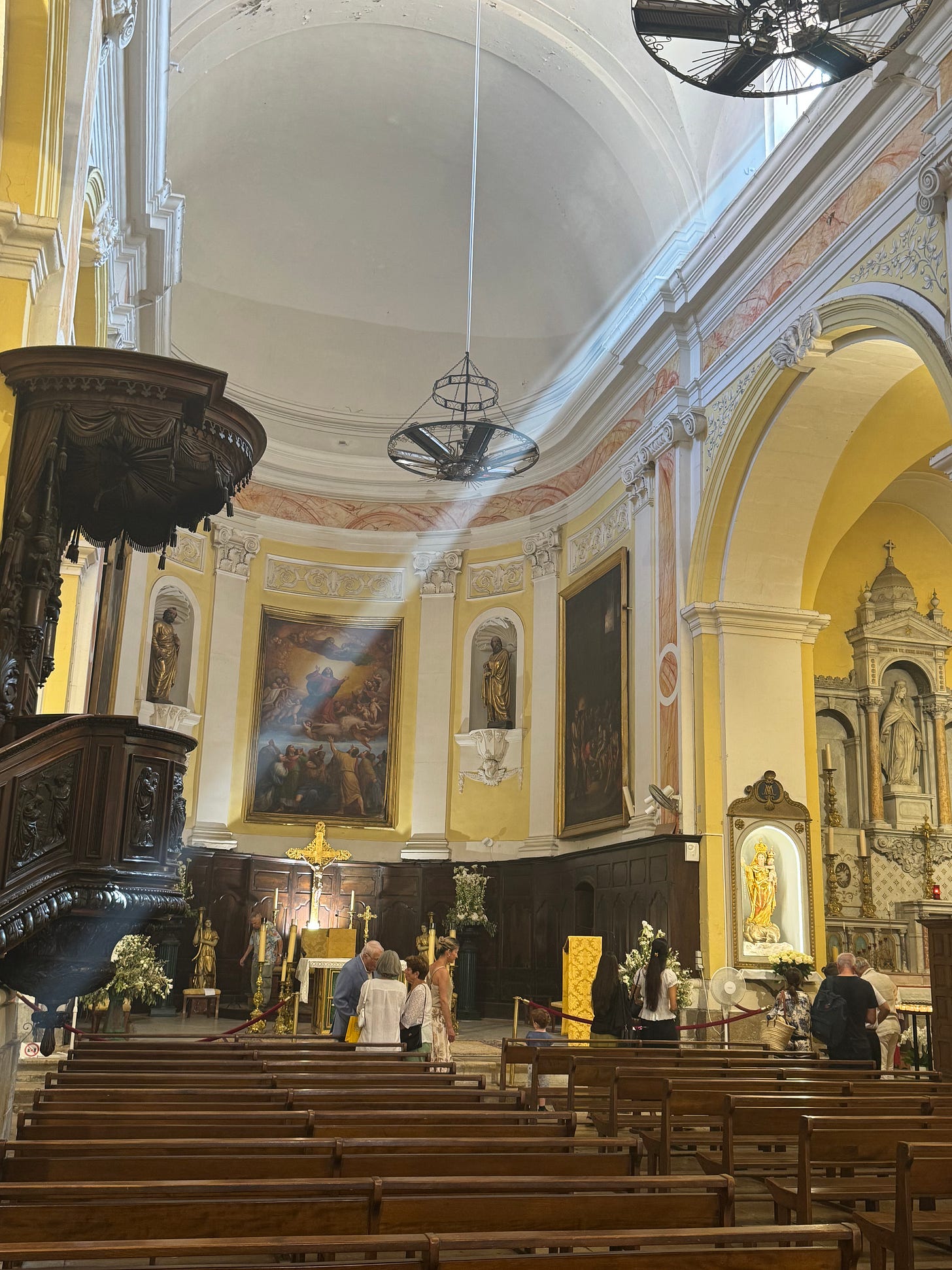 We made our way to the Church of the Assumption in St Tropez for mass and as we left I turned to see this beam of light penetrating through the top window;